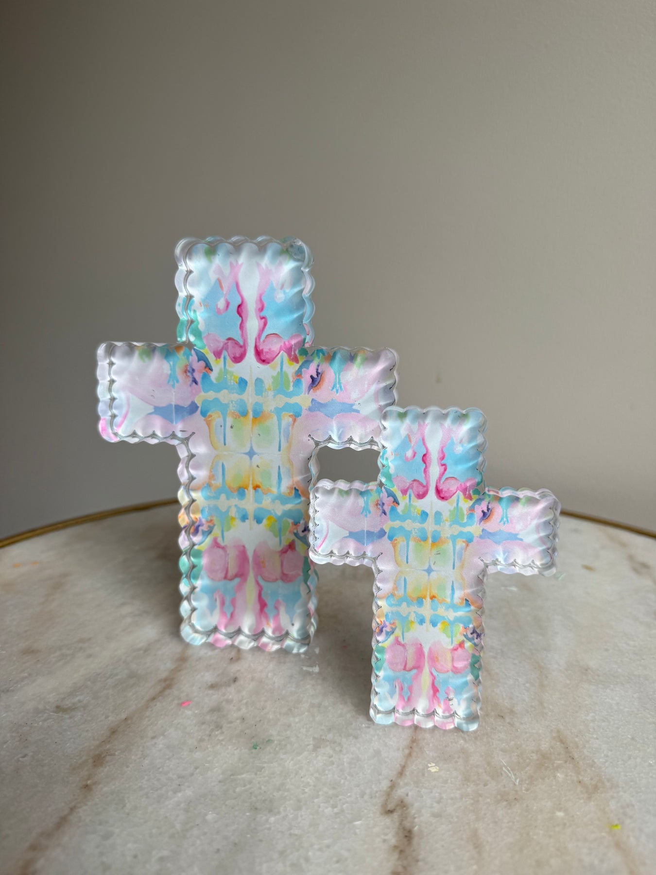 Seconds Sale “Kaleidoscope Scalloped Edge Cross” Acrylic Shelfie
