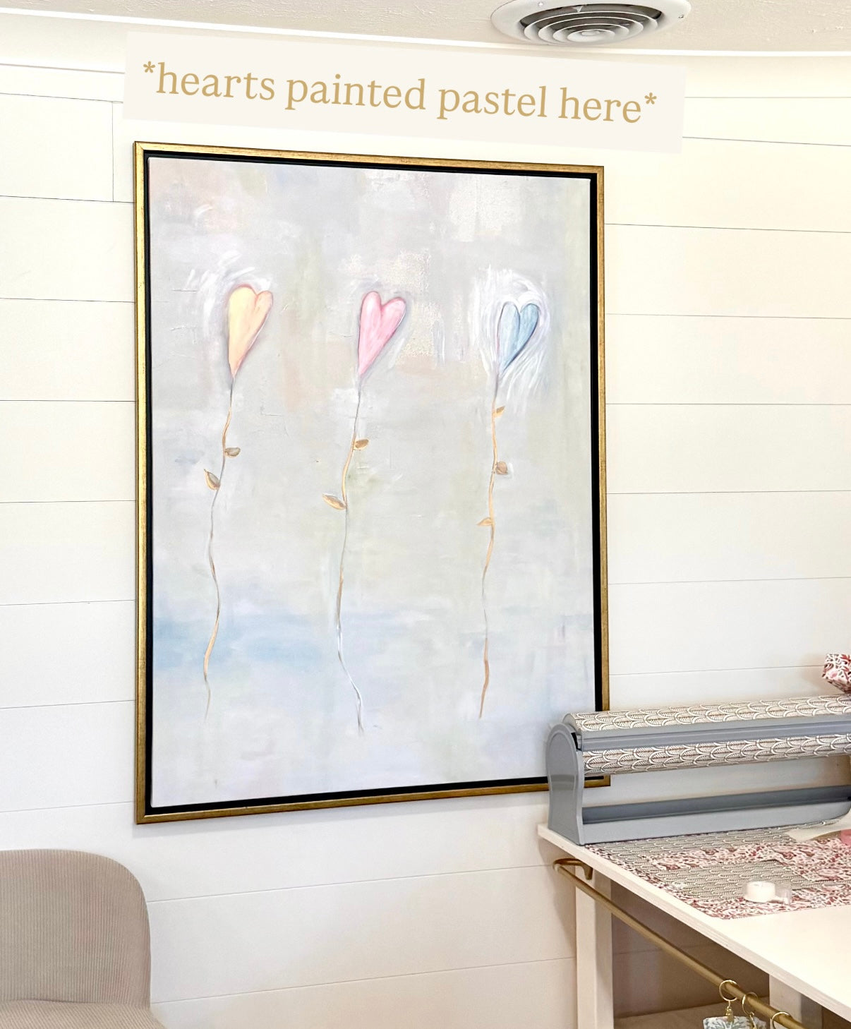 "3 Hearts to Hold” is a piece that symbolizes a family of three, or 3 children, or grandchildren. It is about the love we share, and the hearts that we will always hold close to ours.