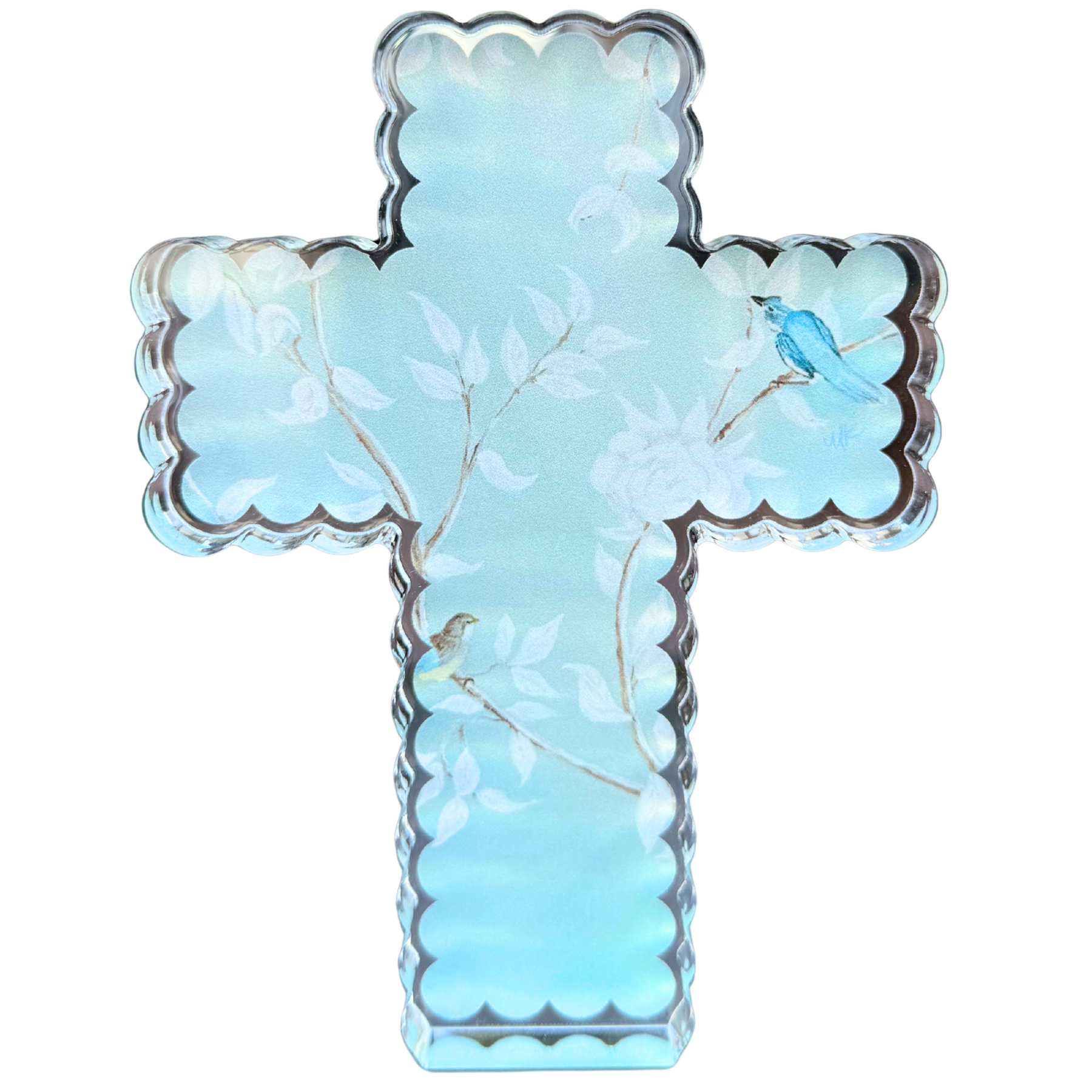 Pre Order “Chinoiserie Garden in Blue Scallop Cross” Acrylic Shelfie